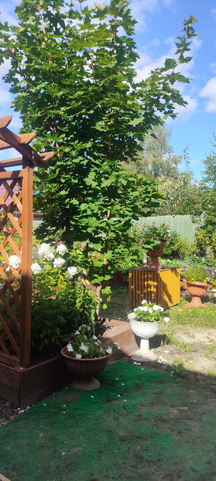- Берёзовые кроны добавляют тень и свежесть.