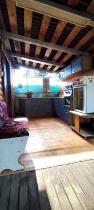 - Блочный дом, оснащённый удобной кирпичной печью, что обеспечивает тепло и уют даже в холодные зимние дни.