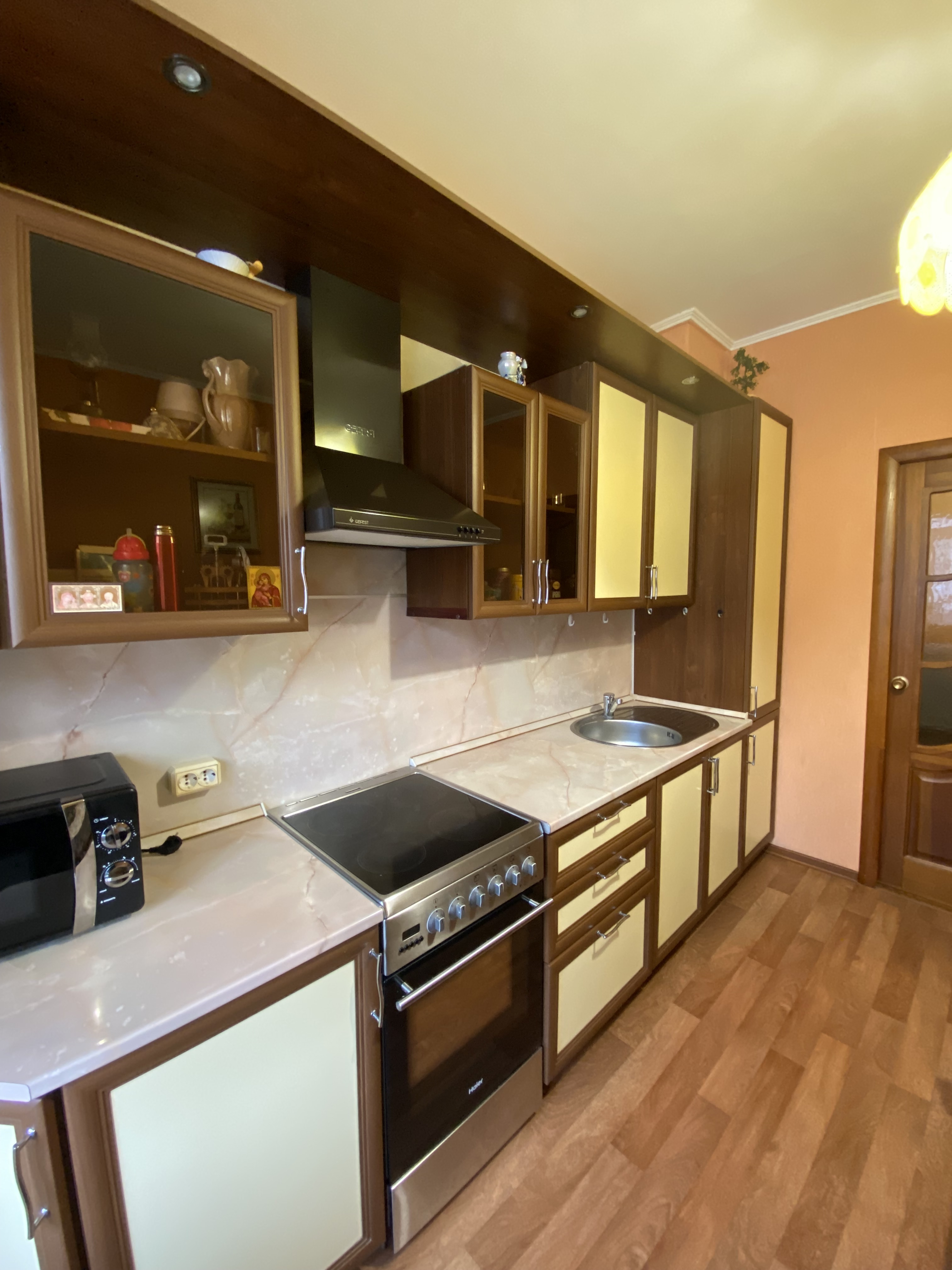 В квартире выполнен аккуратный косметический ремонт: можно сразу заезжать и не тратить время и силы на дополнительные работы. Остаётся вся мебель, которая есть на фотографиях, а также посуда — вам не придётся заново обустраивать быт. Телевизор, правда, забираем с собой.