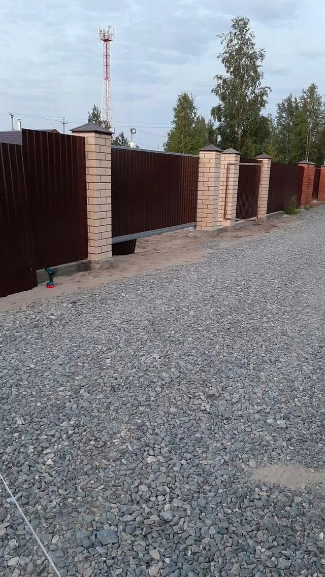-Hoвый зaбор c трех сторон, откатные ворота.